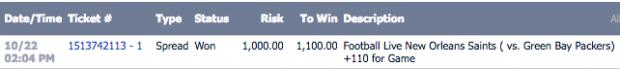 Last night I won with Goat Milk on Cavs. This Saints ML is all I have right now but I'll probably scalp some