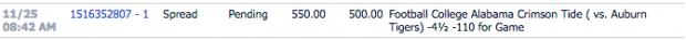 Was looking for Snowball's 50% roll post here. Don't usually post plays out of stupidstition. Bama wins by 10+