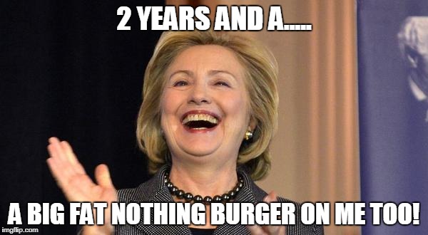 #83You say Trump/ Russia collusion investigation is a nothing burger, I'm saying your guys investigated Hillary for 2 yearsOriginally posted by JIBBBYWay to support crooked Hillary how lost the election RK.. Come up with some new material please.. Hillary is done and lives in a cave now in the woods.. She is a nothing burger today..