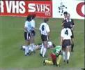0-0 guy makes a pretty bad tackle, not the worst ive seen. ref pulls out a yellow but the Wigan guys surround him so he puts it back in his wallet and pulls out the red