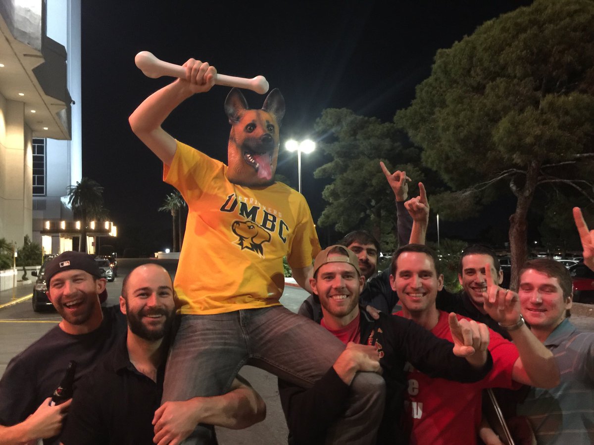 #323UMBC alum John Doyle was carried out of @LVSuperBook by his buddies as they chanted U-M-B-C after the No. 16 Retrievers' historic upset of No. 1 Virginia #RJnow