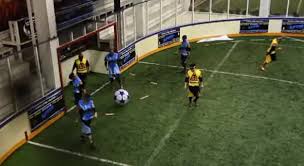 Same as the other soccer except everyone is blind and the ball is bigger. Games go longer because none of them can find the exit. This game on almost its 3rd week now. Still 0-0 .