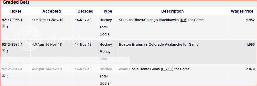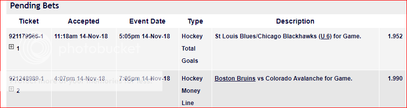 #46Waited for the line to climb on the Boston game. Got it at almost even odds.Originally posted by hotcrossI like the Bruins tonight also, gonna pass on it tho and take the Over in that game at Colorado