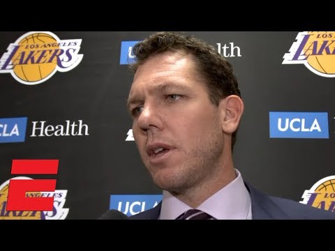 Luke Walton explains how the Los Angeles Lakers were able to come from behind to steal a win against the Cleveland Cavaliers in LeBron James' hyped up return. Walton praises Lonzo Ball and Kentavious Caldwell-Pope for clutch performances in the Lakers' 109-105 road victory.