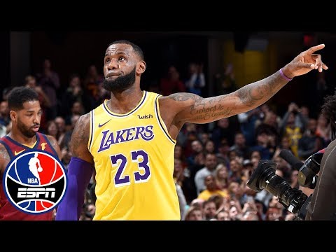 LeBron James receives a warm greeting in his first game back to Cleveland since leaving for the Los Angeles Lakers, then records 32 points, 14 rebounds and 7 assists, as the Lakers went on an 11-0 run in the fourth quarter to take the lead and eventually beat the Cleveland Cavaliers 109-105.