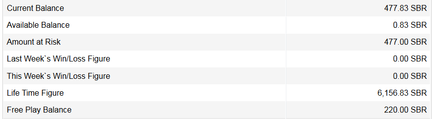 | Free Play Balance | 4,343.00 SBR |