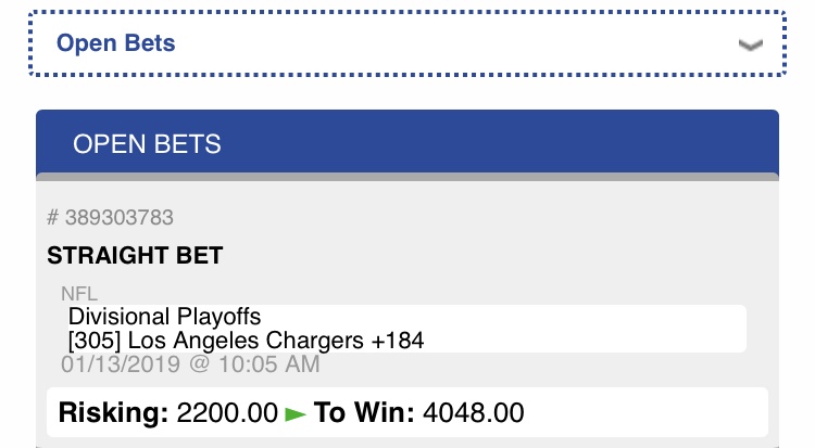 #19I’m @ 50k & trying to climb. Chargers +184 this weekend I bet it early.Comment -