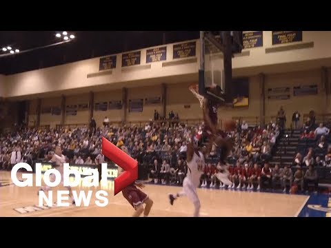 #1College kid blocks a shot and smacks his face off of backboard.Tags: None -