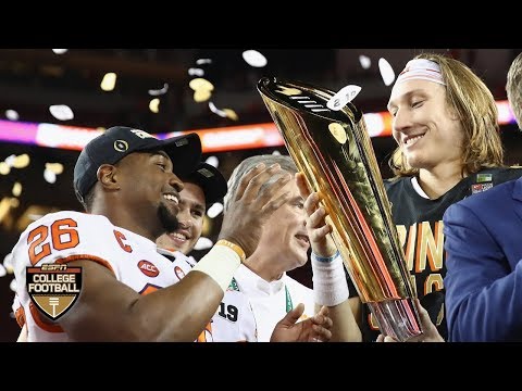 #891Game highlights: Trevor Lawrence throws for three touchdowns and 347 yards, while the Clemson defense forces two Tua Tagovailoa turnovers, as the Tigers rout the Alabama Crimson Tide 44-16 for the first 15-0 season to win the national title.