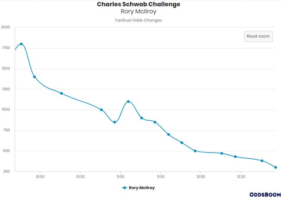 #282As of 9:45 am Rory Mcllroy was 18-1 He's now +300
