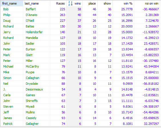 #284Top 21 Trainers by wins in MSW races for 3yo at Santa Anita Park since 2016