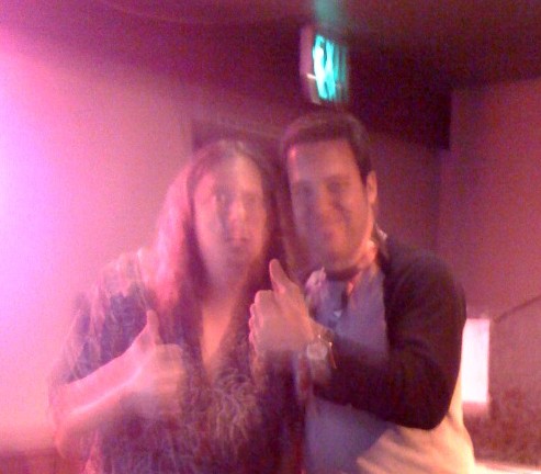 *The **-slash-DJ is a dead ringer for Weird Al Yankovic, only goofier looking. At some point, he pulls out a cheap electric guitar and starts wailing along with the karaoke tune. He's got some good guitar faces. I go compliment him on those.