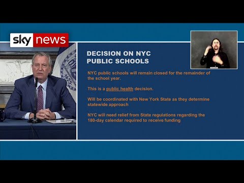 New York mayor announces schools won't reopen until September