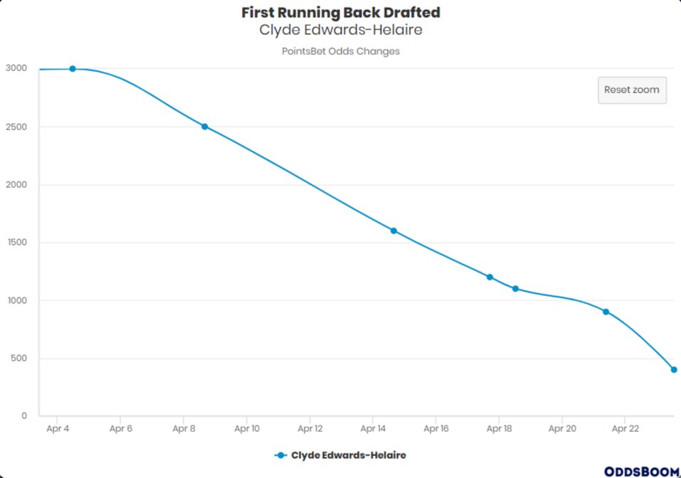 #37Clyde Edwards-Helaire now just +400 at PointsBet to be RB1.