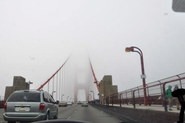 *Now, the thick fog that was covering Cambria a couple days earlier is back with a vengeance - can't see shit on either side of the bridge. This is rather underwhelming after seeing so many picturesque shots of it.