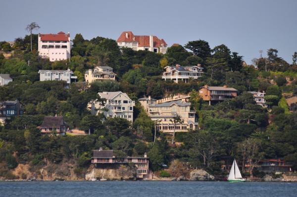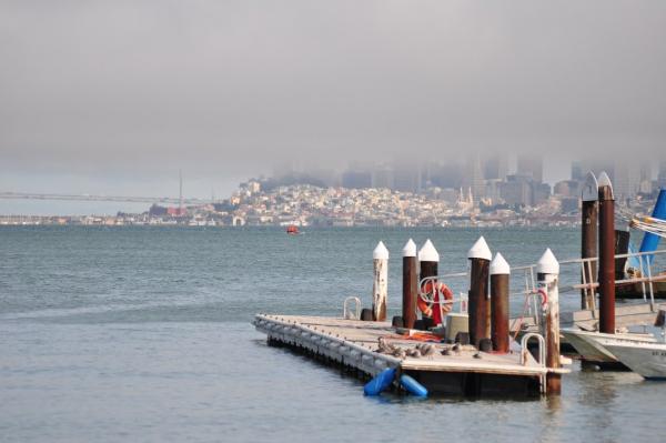 *After crossing the bridge, my GPS craps out and I get lost in the most beautiful little marina town ever, Sausalito. Weather is perfectly clear there for some reason - wall of fog is restricted to the big city.