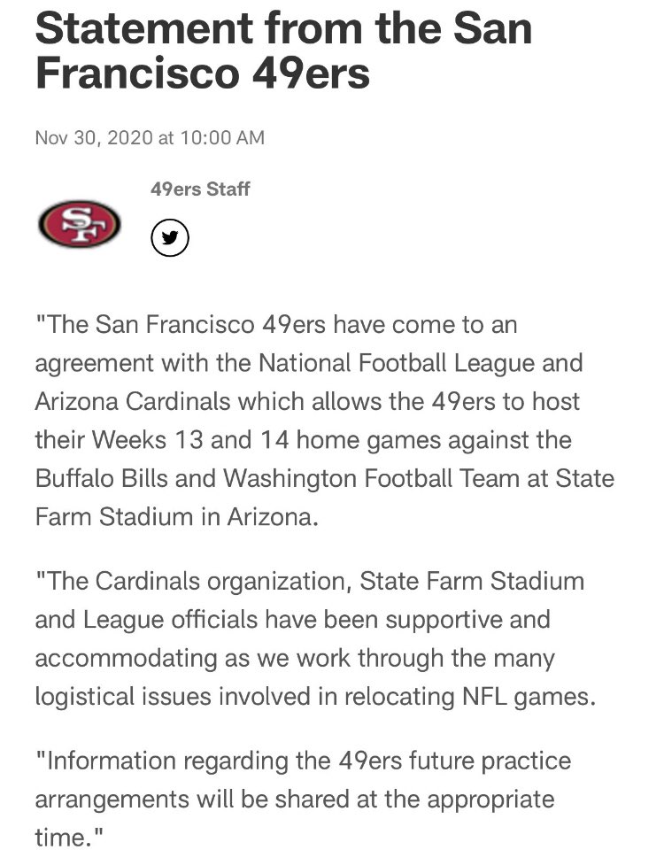 BUFFALO vs SAN FRANCISCO will now play each other at State Farm Stadium in Arizona.