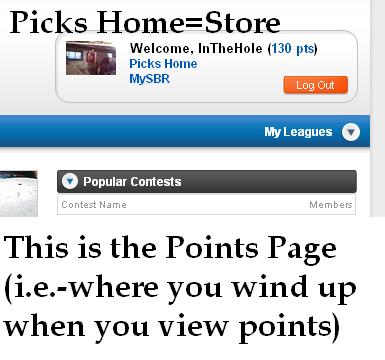 The link near the username when you are SBRPOINTS says "Picks Home"----if you click it you will wind up in the store.