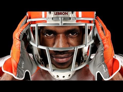 #23James played football for two seasons during his high school days and was considered the No. 1 football prospect in Ohio. At 6-8, 232 pounds, he was compared to "a taller, slower version of Randy Moss." He received recruiting interest from several big-name schools, but he never budged on his desire to play basketball and go to the NBA.