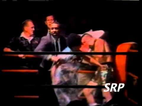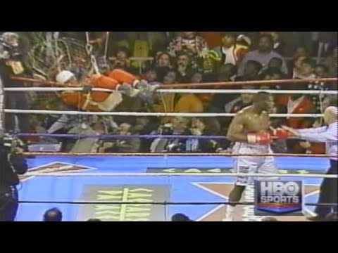 I wish we could see when fan man landed. Guys started beating the shit out of him. One guy had one of those HUGE cell phones and was beating him with it. I remember them dragging him out of there and I thought he was dead. That guy was a damn good paraglider. I still don't know how he was able to land right in the ring. I think Riddick Bowes wife was 9 months pregnant and she fainted or something and had be rushed to the hospital. Boxing used to have so many crazy things happen. I remember one time a boxers mother came into the ring with a shoe and start beating his opponent. Crazy. Fan man killed himself 10 years after that stunt.