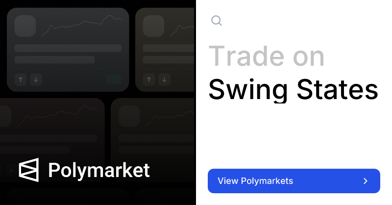 Explore 104 live Swing States prediction markets as of April 2, 2026. Track real-time odds and trade on The World's Largest Prediction Market™