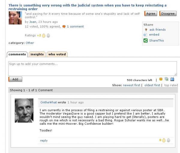 #33Do yourself a favor and talk to Nicky about my investigative skillz. I simply typed "online restraining order" into Google http://minekey.com/topic/Restraining+Order By The Way, maverick, apparently both the chick and you have since changed or removed your avatars since I broke this story....nice cover upOriginally posted by onthewhatI think this one backfired for ITH