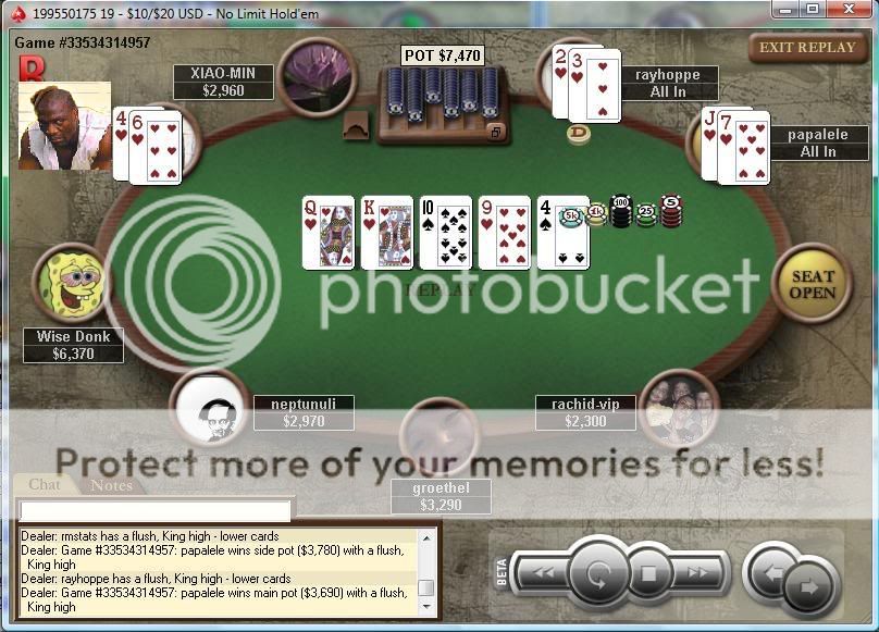 what you think i'm lying and i really play for thousands? anyway, look at the chip stacks, good luck finding a cash game thats 9 handed with all bout the same stack size lolComment -