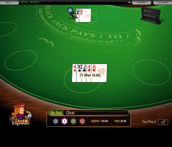 I was messing around playing Double Exposure Blackjack in the SBR casino.