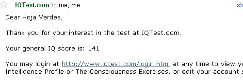 Go to iqtest.com and take there free iq test and post the results here with a screen shot of your score! Lets see who the smartest person is here! It's completely free. All you do is go to the site, click take the test, then I have done all that, take the test now and you're on your way. once completed, it asks to send in your email along with name on certificate. Type in your SBR user name. It will then ask about some credit card stuff. but you dont need to buy it. Just go to your email and it will give a general score there. Take the screen shot and post it here. Lets see how smart everyone really is!