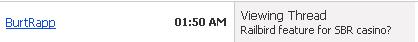 I wish there was a railbird option so I could watch my favorite SBR posters lose there points in the casino. The new sportsbook and casino is awesome though and I am greatful for that.