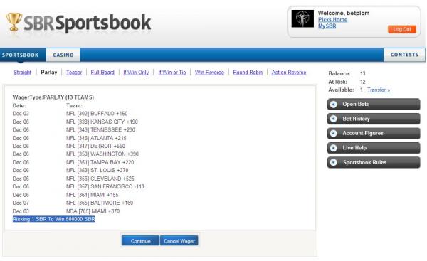 Risking 1 SBR To Win 63 SBRComment -