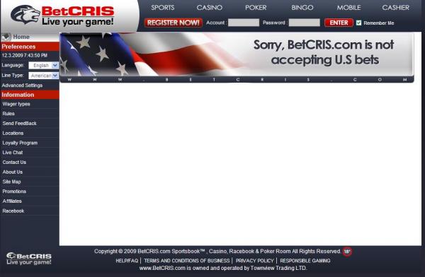 Sorry, BetCRIS.com is not accepting US bets