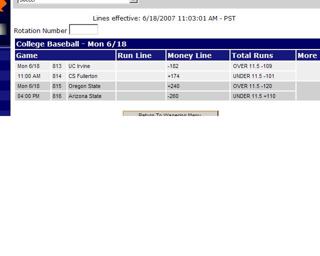 #6pinny page has something crazy once. i remember last year duing the second half of the mlb season, there is a event which was posted around 2am-4am on a certain day...i forgot which day it was. the event was "do not bet +100 and testing +100" i wagered 1 dollar each for fun. the wager was pending for 3 days then it got cancelled.Originally posted by bookieAlthough they will cancel bets if someone past posts them.