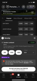 Made 2 large bets on golf last week, cut both odds in half. 25k and 25k, cut both them to 15k, i didnt get one dollar down on 25k. How great is that?