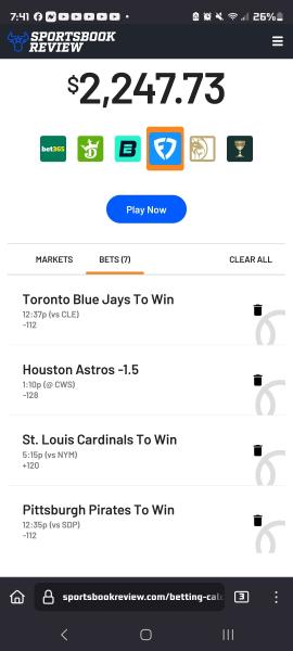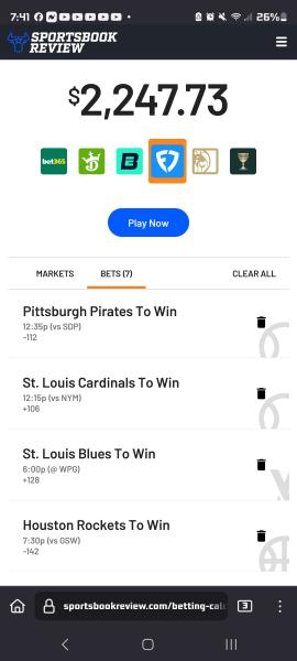 #61Please make sure the wager size/payout/sportsbook are visible in the screenshot.Originally posted by Taur5 teams