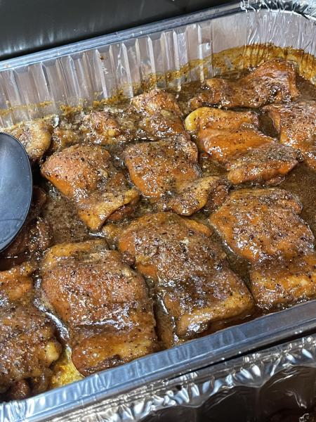The meal was incredible. Salisbury steak and Teriyaki Chicken and Broccoli and cheese and Garlic bread and Banana PuddingComment -