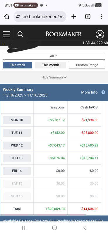 Looks like this is a good book to win at. Withdrawals like clockwork, right?