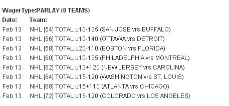 8-team NHL Parlay Lock --- Taking 15 point bets that it wins