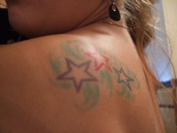 there are 6 of the 7... the 7th was added on to my foot but i don't have a recent pic of it... every tat has a meaning behind it though- most are for family.