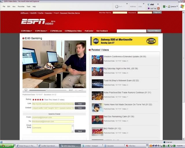 I've watched it over and over and it looks like the guy had SBR Odds in the background on his PC.