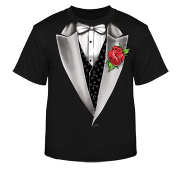 wear a tuxedo t-shirt, laid back and formal at the same time.