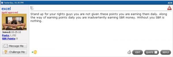 Camel lent me a lot of points and now you are making me STIFF him SBR. You really showed me I was wrong by turning off my points...HAHAHA J/K... You know as well as I do if you turned off everyone's points the traffic would drop so much you would be selling like it was a BP stock after the spill.