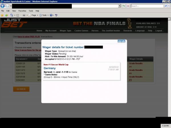 Second bet was Germany -1 risking 25 to win 16
