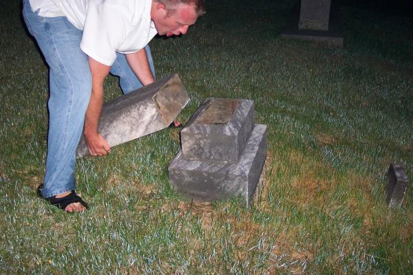 I didnt break it, was actually trying to fix it, I would never desecrate a tombstone.