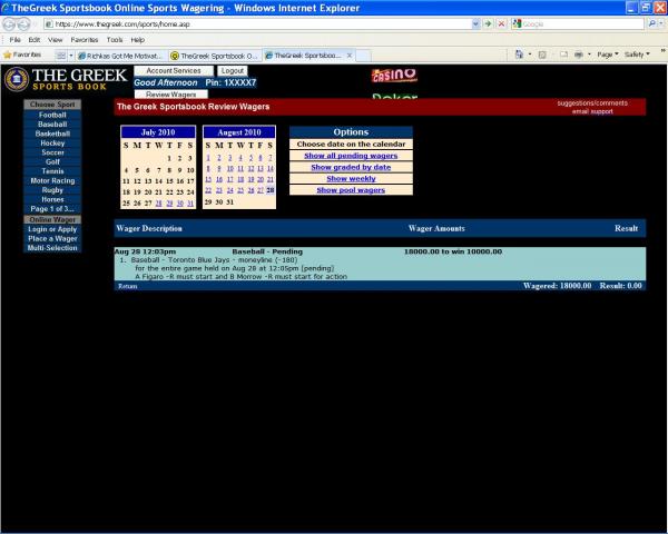 #132Thanks for doing this, and especially you chili for teaching us how it can be done. I think the moral of the story here (at least for me) is that screen shots are worthless. I dealt with this stuff every day when I was working FT and I didn't catch on to any PhotoShopping when TB posted a previous bet but this thread demonstrates why.Originally posted by linedrivrstill cant figure out how to expand the image to make bigger but that is my attempt at editing a greek screen shot. besides the changes I made to the account number and the bet size, there is a small difference from the unedited page. The Casino Poker image at the top doesnt come out right. other than that, its pretty close. In my non-expert attempt at editing this screenshot, I will now say it is possible to edit a screenshot effectively with the right software skills even though my attempt is detectible. My apology to everyone here that were called out to prove it could be done. At least we accomplished something today! I will toss chiledog some points as promised. With this said, I am not jumping on the TB is a fraud wagon. I personally think he is a big fish at the book.