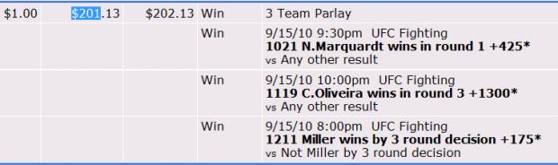 Wager Type:Parlay (6 team)Wager Status:WinRisk / To Win Amount:1.00 / 44.27 (USD) Accepted 9/4/2010 1:29 PM - ESTWon: 44.27Amount Paid: 45.27 Item #1Wager Type:SpreadOutcome:WinSport / Period:College Football / Game Selection: