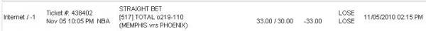 #1Phoenix/Memphis total graded incorrectly at SBR Sportsbook, Hotel, and Casino ResortsTags: None -