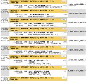 #210he just posted another screenshot 2 days ago of a winning parlay that was 73 to win 13000+$Originally posted by Wulfman14but points matter in comparison to your bankroll. if you have tens of thousand of dollars that you are gaming with then wtf is 50 , 100 or even 1000 pts except maybe if your an action junkie. points are good for someone with my bankroll of 200 dollars . i can hedge my bets with them and yes bet on days that i wont bet with real money. york is my friend at sbr forum. i like his posts and he makes SBR poker fun. it is my hunch that the guy lost his bank roll with more wagering as that screen shot was back in 2009 i believe. i think he is trying to replicate a run like that again. thus the heavy need for points at the moment.