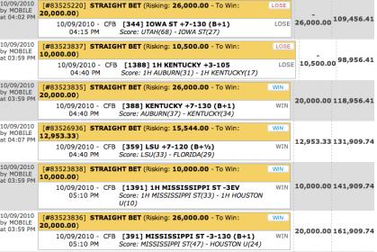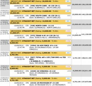 #207but points matter in comparison to your bankroll. if you have tens of thousand of dollars that you are gaming with then wtf is 50 , 100 or even 1000 pts except maybe if your an action junkie. points are good for someone with my bankroll of 200 dollars . i can hedge my bets with them and yes bet on days that i wont bet with real money. york is my friend at sbr forum. i like his posts and he makes SBR poker fun. it is my hunch that the guy lost his bank roll with more wagering as that screen shot was back in 2009 i believe. i think he is trying to replicate a run like that again. thus the heavy need for points at the moment.Comment -
