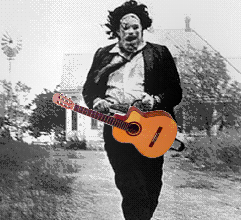 #8Nice black and white picture with a colorful quitar. My question is how is the guitar attached to JJ's body since his hands are not holding it? Is there a pecker strap?Comment -